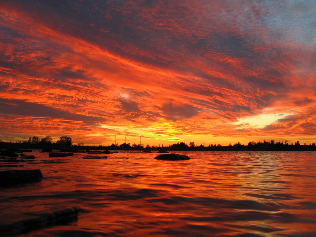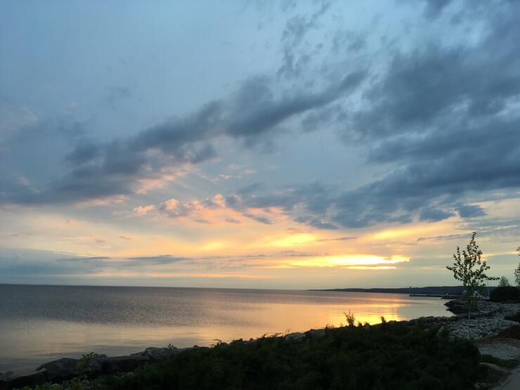 North Bay est l’un des plus beaux sites où trouver l’inspiration : sentiers de randonnée, hérons bleus (zhashagiwag) et couchers de soleil sur un lac Nipissing scintillant. Le lac, les nuages et le soleil s’épousent à merveille — au vu et au su de tous.