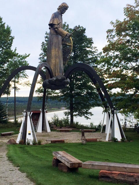 Lake Superior’s legacy extends onto her shores and a colourful cast of characters who have left their mark on the land and her people. On a bluff overlooking Keweena Bay in L’Anse, Michigan, is a shrine to Roman Catholic Bishop Frederic Baraga, known as the Snowshoe Priest. A 60-foot statue has him clutching a seven-foot cross in one hand and supporting 28-foot snowshoes with the other. A native of Slovenia, he established a mission here in 1843. Fervent in his duties, he travelled as much as 700 miles in the winter. He was fluent in eight languages, including Chippewa; nonetheless, serving the diversity of people in the area, which included Indigenous people, French-Canadian settlers, and German and Irish immigrant miners, was a challenge.