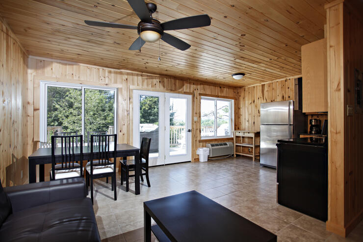 Killarney Provincial Park rents out two rustic wood cabins that sleep five people each. With a propane fireplace, kitchen amenities, and comfortable beds, these cabins offer the ultimate in heated accommodations in the wilderness. Cook yourself up a fabulous dinner and get cozy by the fire after a day of snowy adventure.