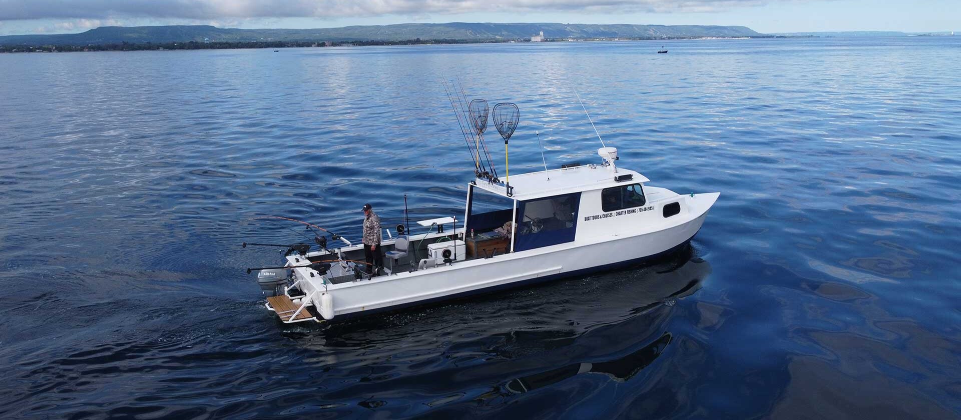 What makes their boat “Solidsteel” one of the best charter vessels in Collingwood Harbour you ask? The answer is simple - space, cleanliness and comfort. With the largest fighting deck of any boat in Collingwood Harbour, Solidsteel is one formidable charter boat. She handles the water smoothly and is a perfect boat for their waters in Southern Georgian Bay. Always clean and with comfortable additions like the onboard washroom, fridge, stove, music, covered top, full deck lighting and more... there just isn’t anything that compares.