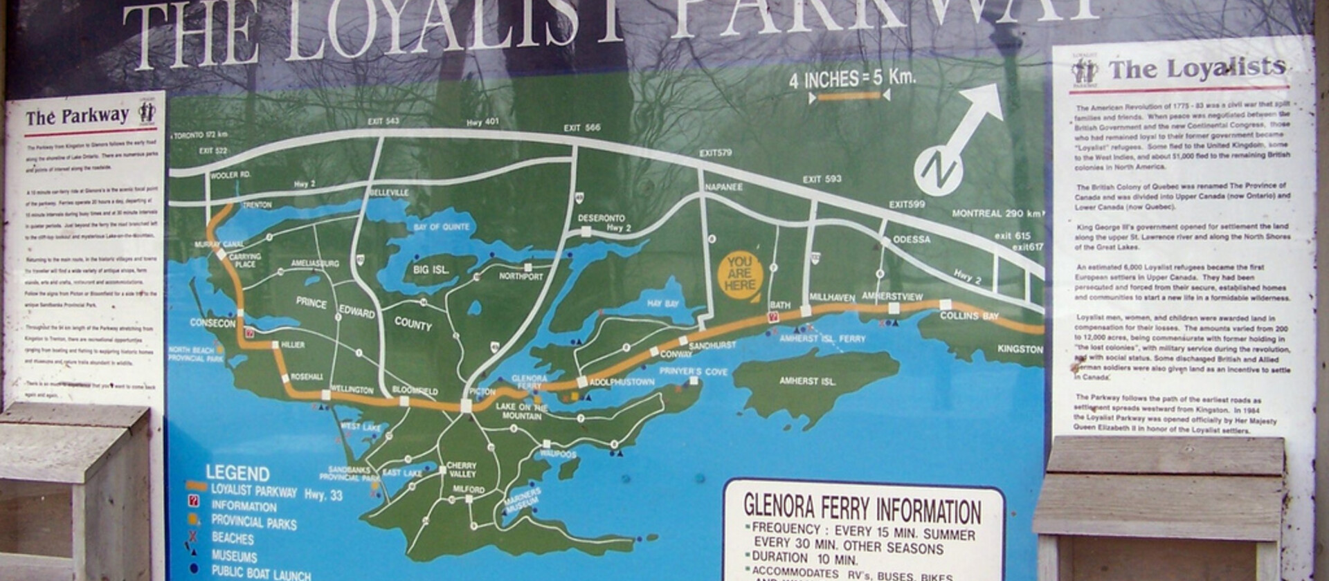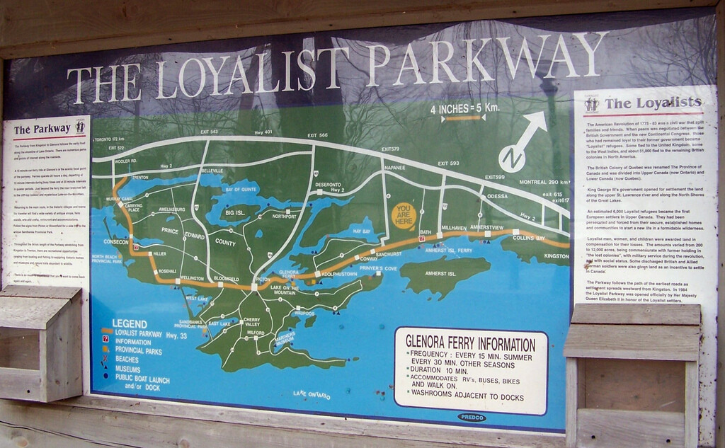 Historical facts & background: Known as “a route through history,” the Loyalist Parkway follows the course of Loyalist settlement which began in 1784 following the American Revolution. There are over 40 listed archaeologic sites and at least 125 heritage buildings on or adjacent to the Parkway.