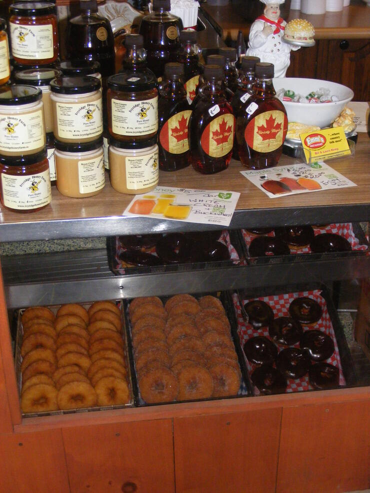 The interior of the restaurant is wonderfully unique and fun, and the restaurant/Farm Market’s claim to fame are the homemade doughnuts made fresh and served warm throughout the day!