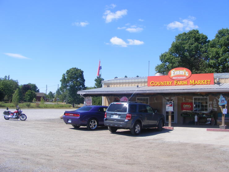 Emm's Restaurant and Country Farm Market: Super biker-friendly, with plenty of room for motorcycle parking. Located at 20261 Loyalist Parkway, Consecon (not far from the Trenton end of the Parkway), this quaint owner-operated restaurant/diner with great home cooking and excellent service and value.