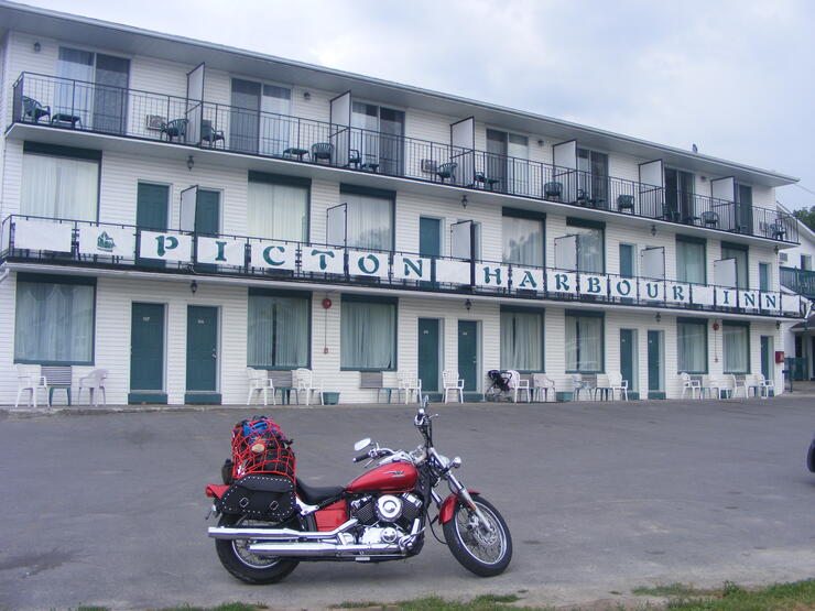 Ruby and I found the perfect place to stay, right in the heart of picturesque Picton. The Picton Harbour Inn has a multi-level Inn on the main road, with a row of motel rooms at the back of the Inn, featuring parking right outside your room and a lovely view of the harbour at the head of Picton Bay. It offers a total of 29 comfortable guest rooms, a two-bedroom apartment, and a three-bedroom apartment, all tastefully decorated and many furnished with locally-made oak furniture, and the walls are hung with vignettes of the past in the form of archival photographs of Picton Harbour in bygone days.