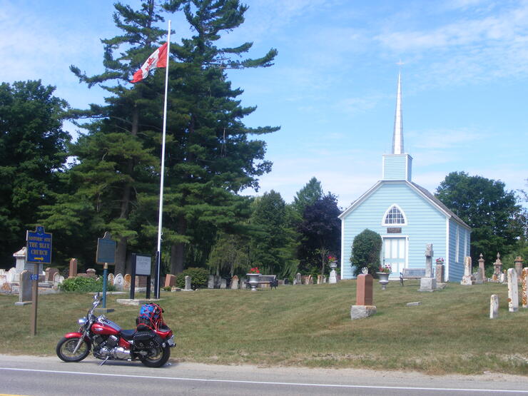 A Short History: The first Blue Church was built in 1790, and was destroyed by fire. The second church—built in 1809—suffered the same fate. The present church was built in 1845 and remains in very good condition. The cemetery is rich in history, containing the graves of many who were prominent in the early days of Upper Canada, plus a monument to Barbara Heck, the founder of Methodism in America. The care of this church and cemetery belongs to a board, who welcome members and participation in their planning and endeavours. No one knows the real reason why the church was always painted blue, but the tradition is still kept up today.