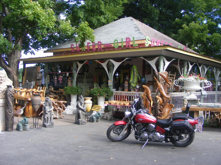 Surfer Girl Shop & Iron World Canada: Located at 13418 Loyalist Parkway just outside of Picton, this is just one of the many interesting stops that pepper the entire length of the Parkway. A landmark in the region, and very biker-friendly, there’s something for everyone at this collection of eclectic items from around the world and right in our own backyard.
