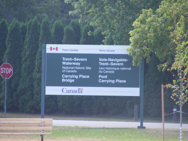 A cairn marks the site of a meeting in 1787 between Sir John Johnson and Mississauga Chiefs. The British were seeking land for alternate routes from Lake Ontario to Lake Huron.