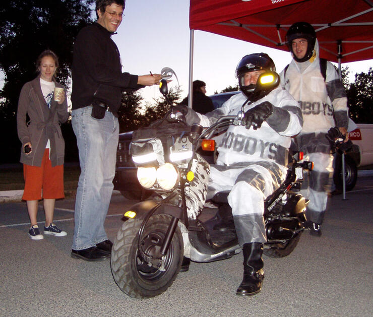 Dressed up like a trick or treater, leaving at 3:30 in the morning to ride for 24hrs straight around through rain and whatever else Mother Nature throws at you while your butt grows so sore that you wish it would just stay numb. This is why we ride! Not motorcycles of course...scooters!