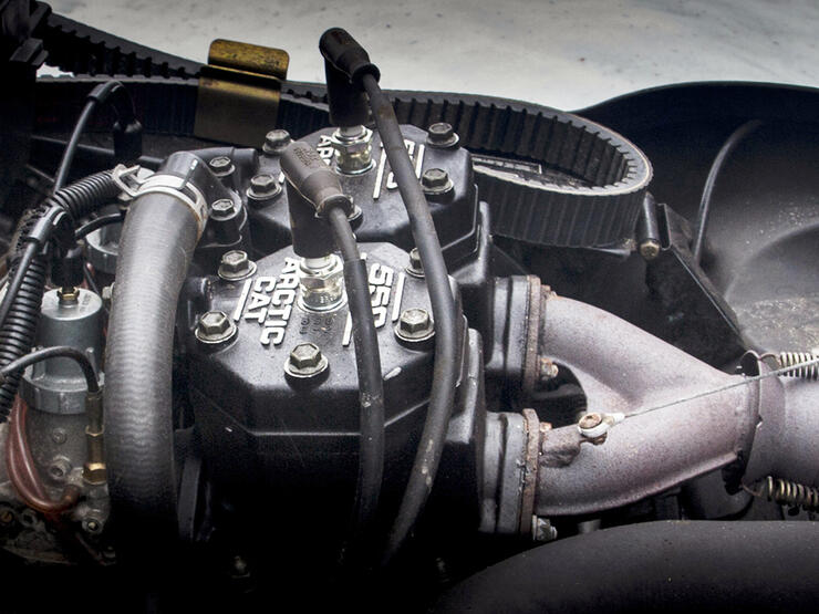 Our 2-stroke Arctic Cat Panther is a classic, according to the Ontario Federation of Snowmobile Clubs (OFSC). Many sledders have of course switched to that wonder of modern snow tech, the 4-stroke. Either machine should awaken if you fogged the engine and added a fuel stabilizer to the premium fuel in the tank when you put it to bed last year. We did both, but even so there’s trouble as the starter won’t engage, so a pull on the starter recoil is required. Ouch. It hurts already. Sleds like to run. Sitting idle for long periods, especially if stored outside, allows rust, plant life, mice, and bugs to hamper the revival process.