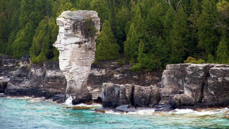 Of course, the ultimate destination for the tour boats is Flowerpot Island. The flowerpots, unique rock formations that tower over the shoreline, are considered to be one of the most fascinating attractions provided by nature in the entire country.
