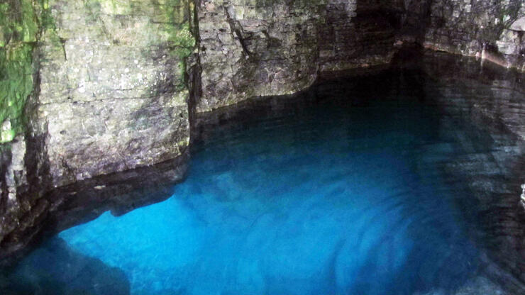 It's a fascinating sight. You’ll be cruising along with a clear view of the lake bottom a few feet below the glass. Then suddenly the lake bottom disappears into the abyss as the boat passes over the cliff, and the water is now hundreds of feet deep.