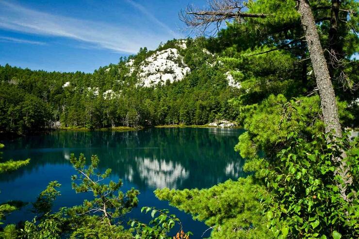 The Crack Trail (yes, that’s its official name) follows an old logging road before its rocky inclines grow steeper as the trail progresses. Hikers can snack on wild blueberries along the trail before reaching the unforgettable ridge summit three to four hours later. At the top of a breathtaking lookout point, hikers are treated to a truly epic panorama: the La Cloche mountain range, vibrant pine forests and deep glacial lakes shimmer under big Killarney skies. Don’t forget your camera—this is an iconic view that you'll want to remember.