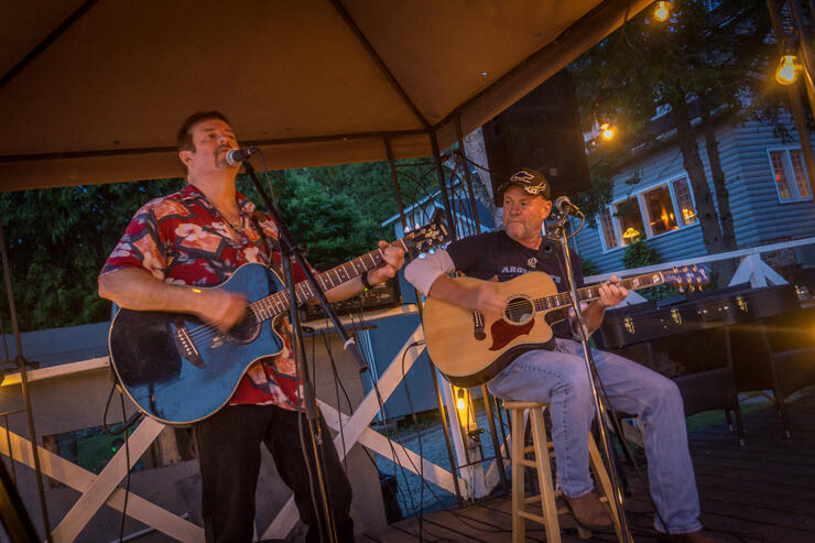 After a long day of riding, it’s safe to say that I was ready to peel myself out of my Speed & Strength gear and put on my swim shorts for a dip in the Lake. With our choice of watersports activities, we decided as a group to jump in a wakeboard boat and go for a ride on a banana raft because… why not? Apparently, we weren’t done riding for the day! Born and raised going to the lake, it wasn’t long before I was the only one left holding on for dear life on that banana raft. I had an absolute blast! With the sun setting, we dried off and sat out on the patio to enjoy some good grub and evening entertainment. The company was great, and the evening was spent chatting about our riding plans for the next day.