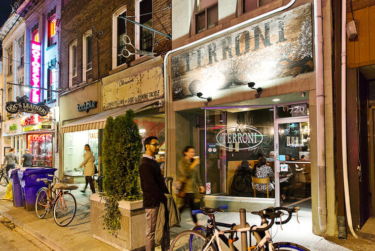 - Terroni (57, rue Adelaïde Est) est installé dans un ancien tribunal. Fleurs de courgette au menu. Succursale sur la rue Queen Ouest.