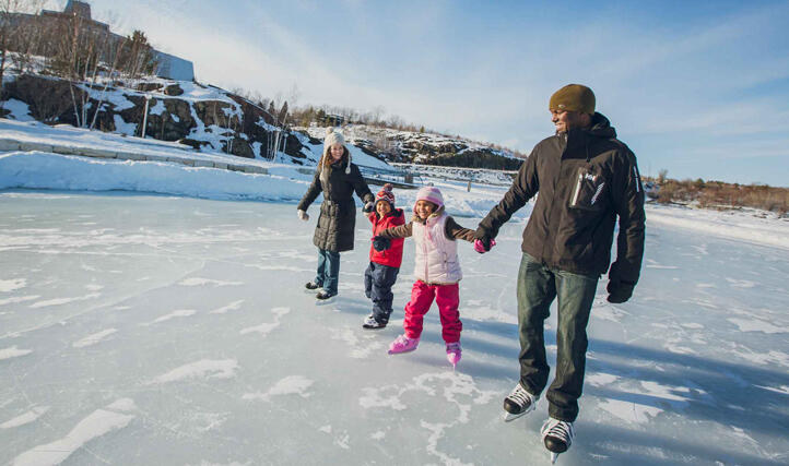 Lacez vos patins et lancez-vous sur le sentier de glace du lac Ramsey pour une belle activité familiale en plein air, ou optez pour une soirée paisible sur la patinoire ovale éclairée du terrain sportif Queen’s.