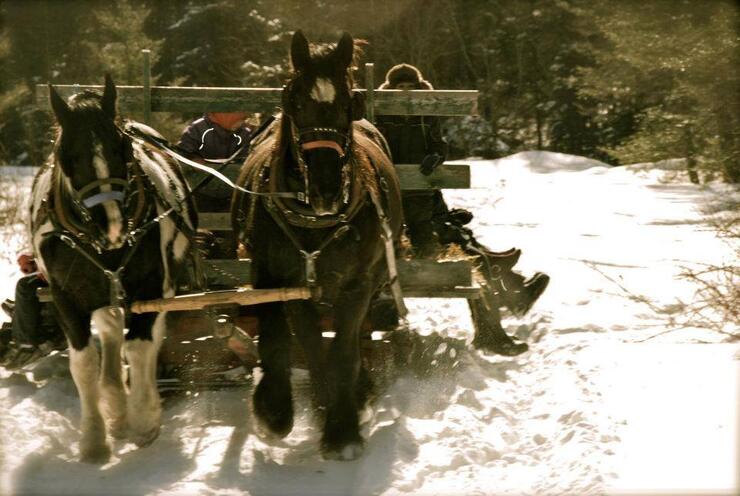 Emmitouflez-vous pour une promenade en traîneau tiré par un cheval à travers un paysage hivernal féerique au Wagonwheel Ranch, avec une halte en forêt près d’un grand feu pétillant pour vous réchauffer et faire rôtir vos gâteries préférées. www.wagonwheelranch.net